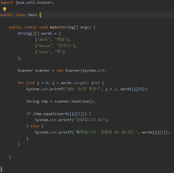 2차원 배열의 초기화 예제 연습 코딩 캡쳐본