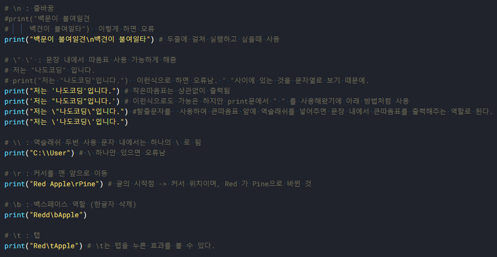 [Python] 파이썬 탈출문자 (역슬래쉬)