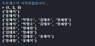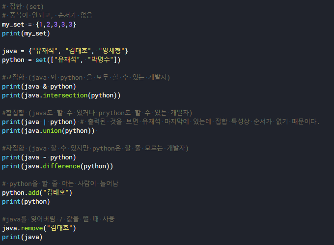 print(java | python) # 출력된 것을 보면 유재석 마지막에 있는데 집합 특성상 순서가 없기 때문이다.